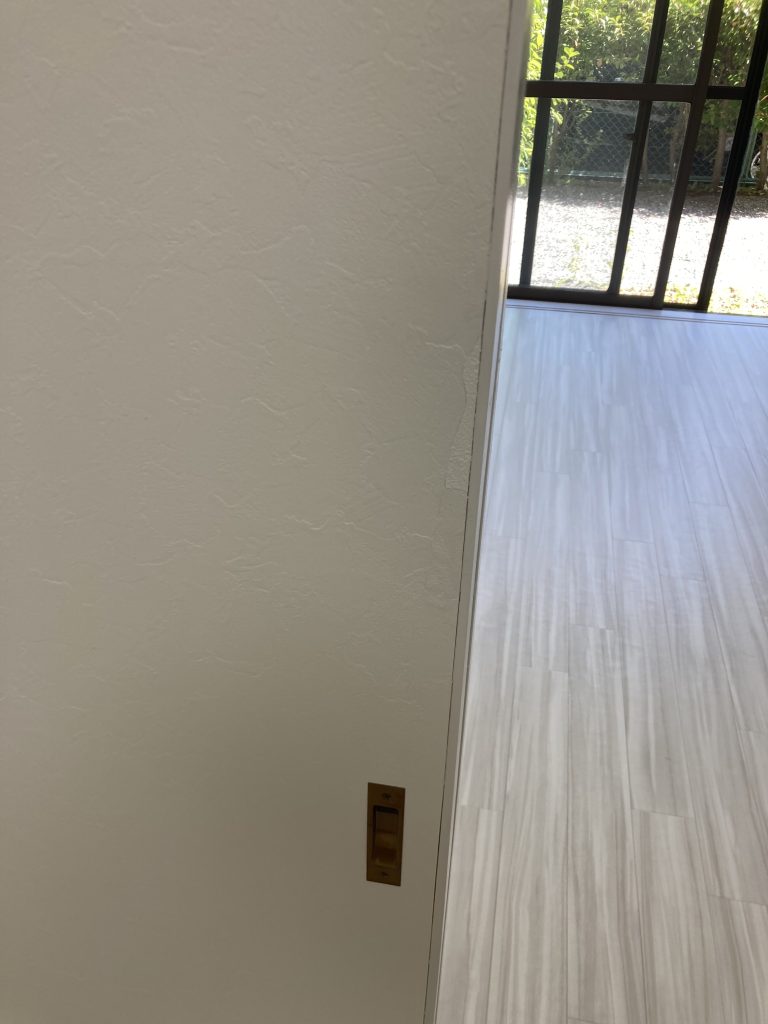静岡市清水区のリフォーム物件にて。お部屋全体をフルリフォームしていたところ、よく見てみると洋ふすまの紙がペロンと剥がれているのを発見。
