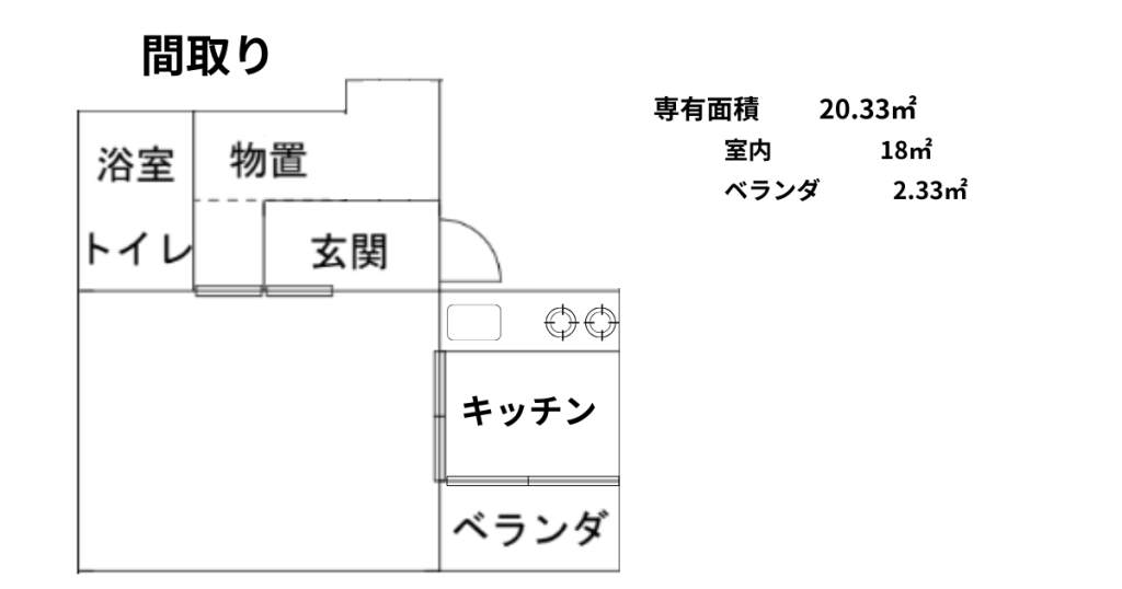 一人暮らし用としてはめずらしく調理スペースが広く、自炊を楽しみたい方にもぴったり。