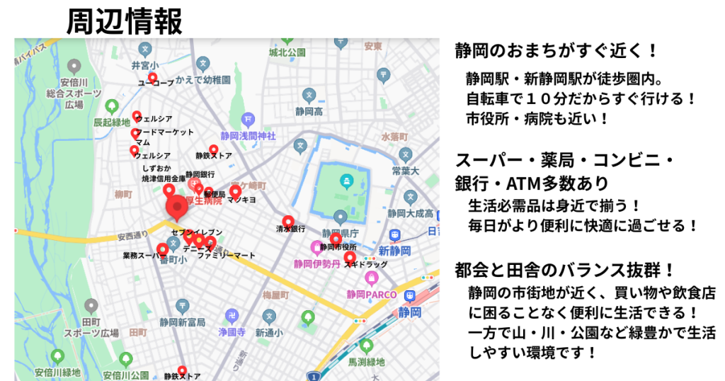 “静岡のまんなか”で便利に、そして安心して暮らせるお部屋です。