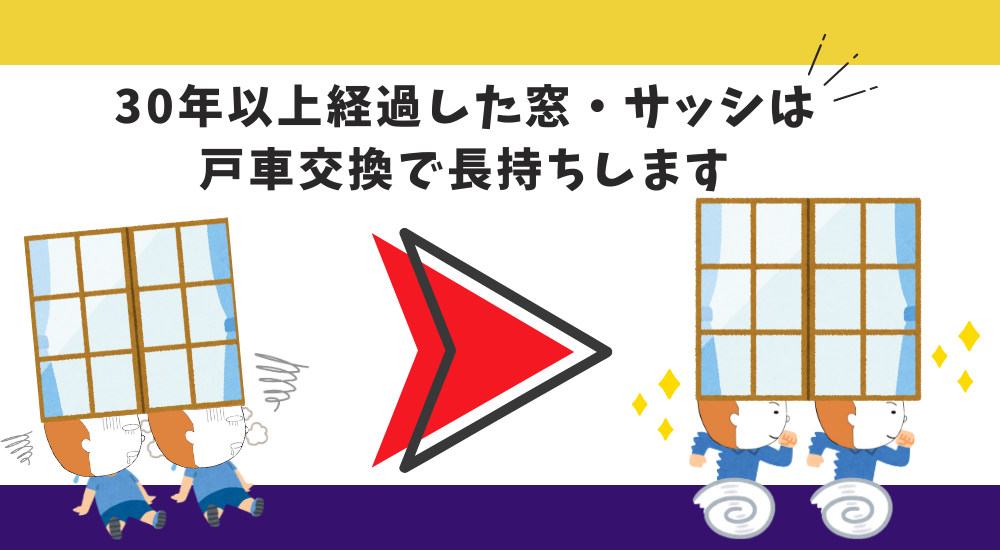 築30年以上経った住宅の窓やサッシは、ほぼ確実に戸車が劣化しています。